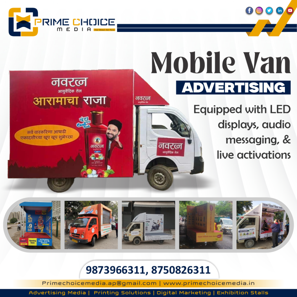 Mobile van advertising is ideal for product launches, political campaigns, real estate promotions, retail offers, events, and government awareness programs. With professional execution, wide reach, and cost-effective pricing, Prime Choice Media helps brands achieve powerful on-ground visibility and measurable results through mobile van advertising.