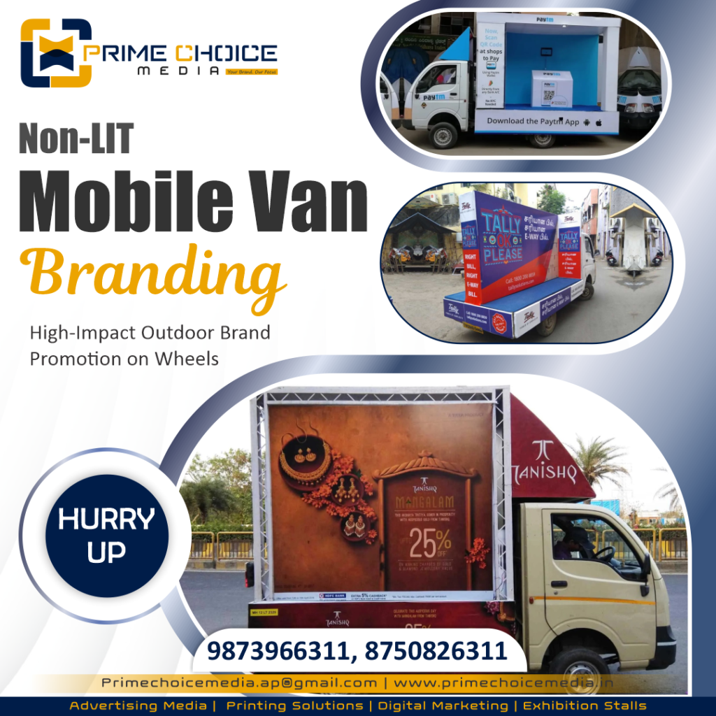 Prime Choice Media offers professional non-lit mobile van branding services with durable printing, attractive designs, and strategic route planning to ensure optimum reach. This advertising option is ideal for long-duration campaigns, mass brand awareness, and local promotions. Non-lit mobile van branding works best for product promotions, real estate projects, retail offers, political campaigns, and government awareness drives. With affordable pricing, flexible coverage areas, and strong brand recall, non-lit mobile van branding is a reliable outdoor advertising choice for businesses looking to maximize visibility without high operational costs.
